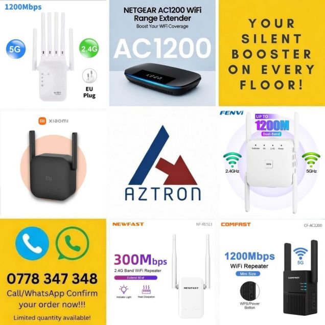 Aztron offers high-performance dual-band 1200Mbps WiFi repeaters designed to eliminate dead zones and extend strong, stable coverage throughout your home or office. With combined speeds of up to 1200Mbps, they ensure smooth streaming, fast downloads, and uninterrupted online work. Built for reliability and easy setup, Aztron.lk WiFi repeaters keep you connected wherever you need it.